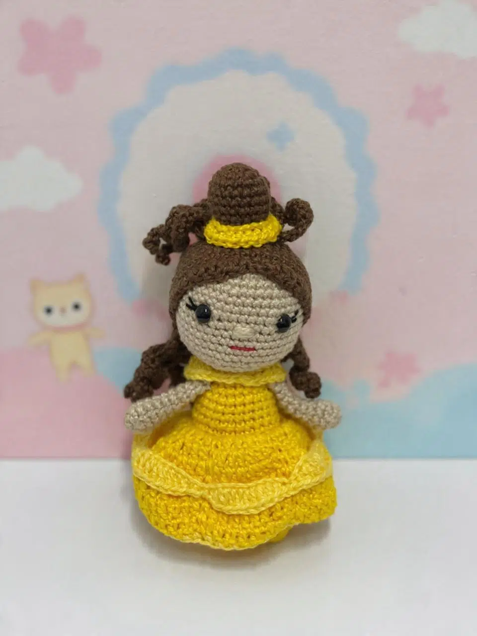 Delicado crochê da princesa Bela, da história A Bela e a Fera.