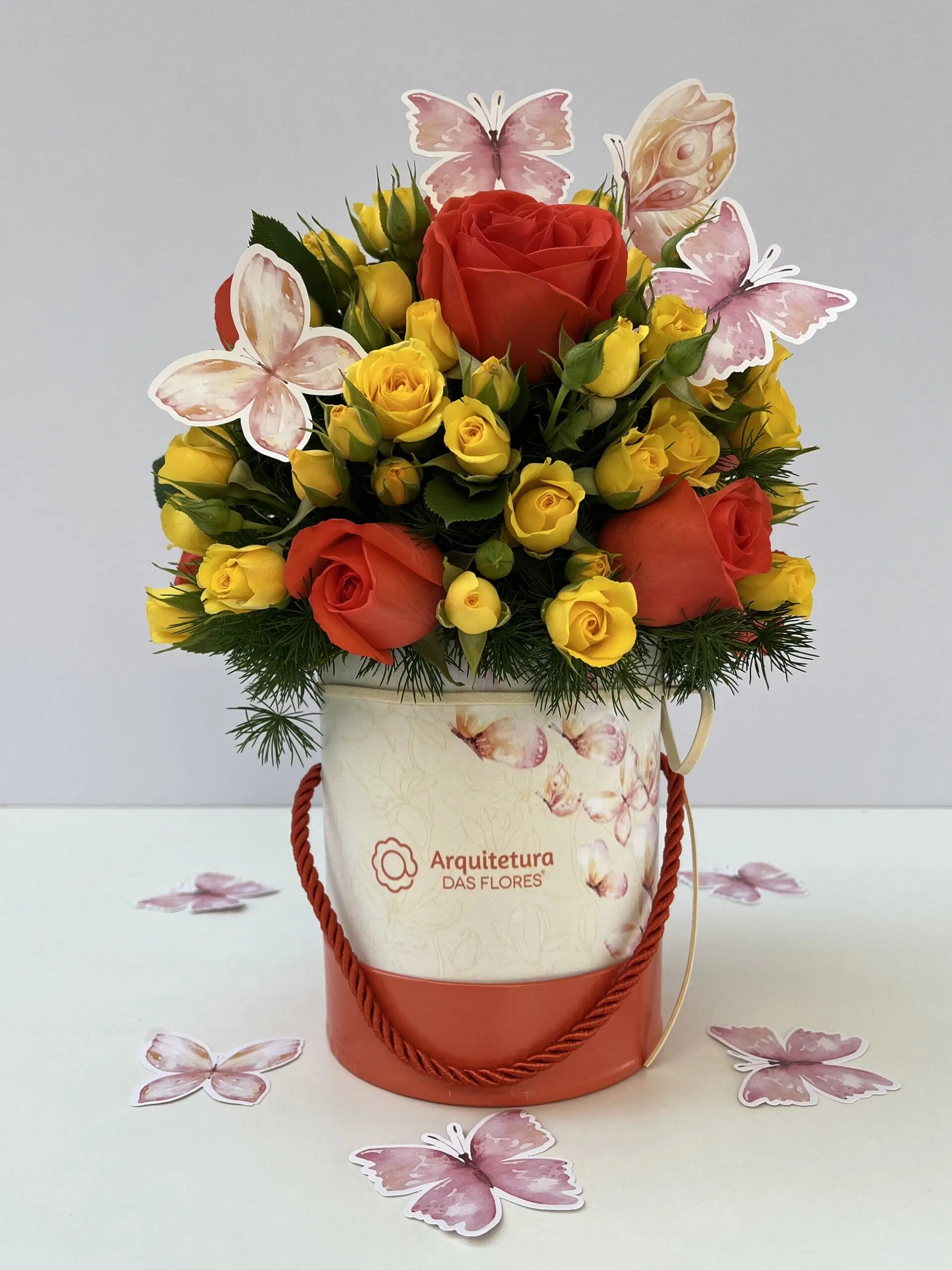 Todos os arranjos são feitos de forma artesanal e, por esse motivo, as medidas são aproximadas, podendo ter variações de cor ou tamanho.