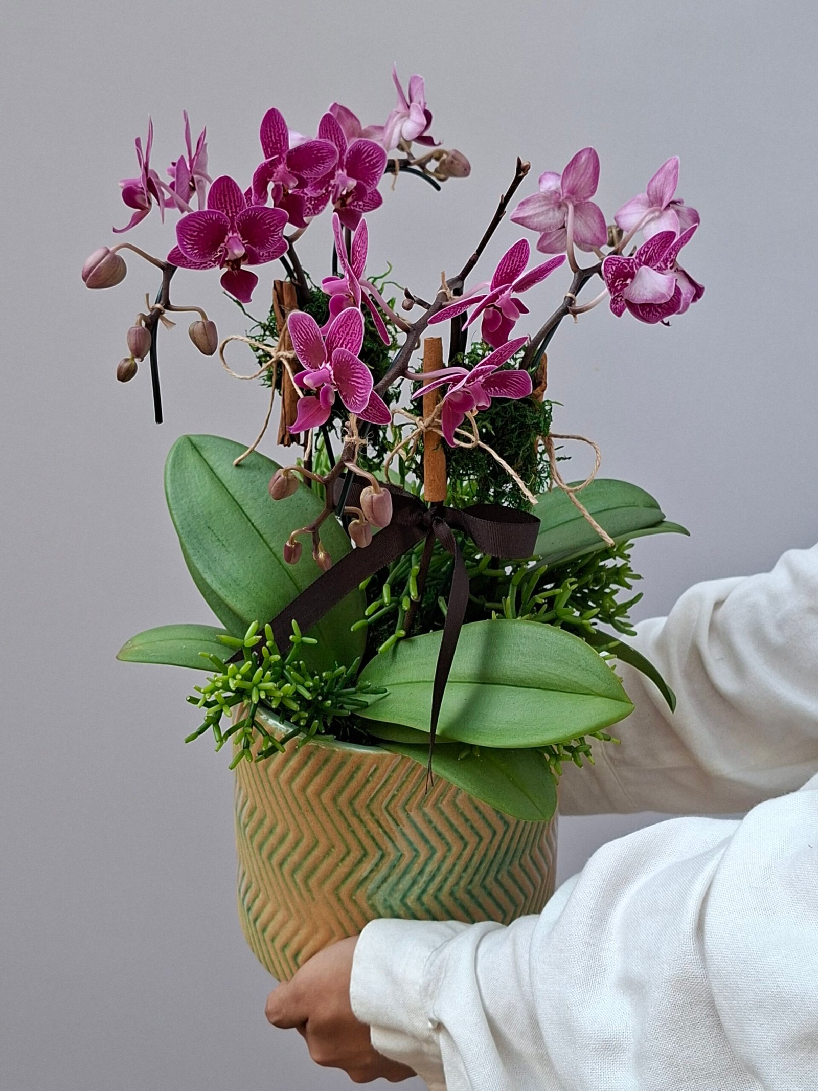 Presenteie com toda sofisticação e serenidade através do nosso lindo arranjo “Belles Fleurs”, feito cuidadosamente para levar toda a beleza natural das Orquídeas em qualquer ambiente.