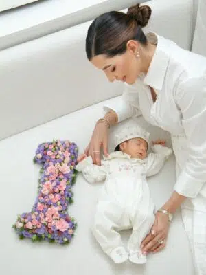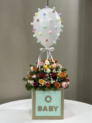 Delicadas e adoráveis Mini Rosas pink e cor-de rosa compõem a box Bienvenue para celebrar a chegada do recém-nascido.