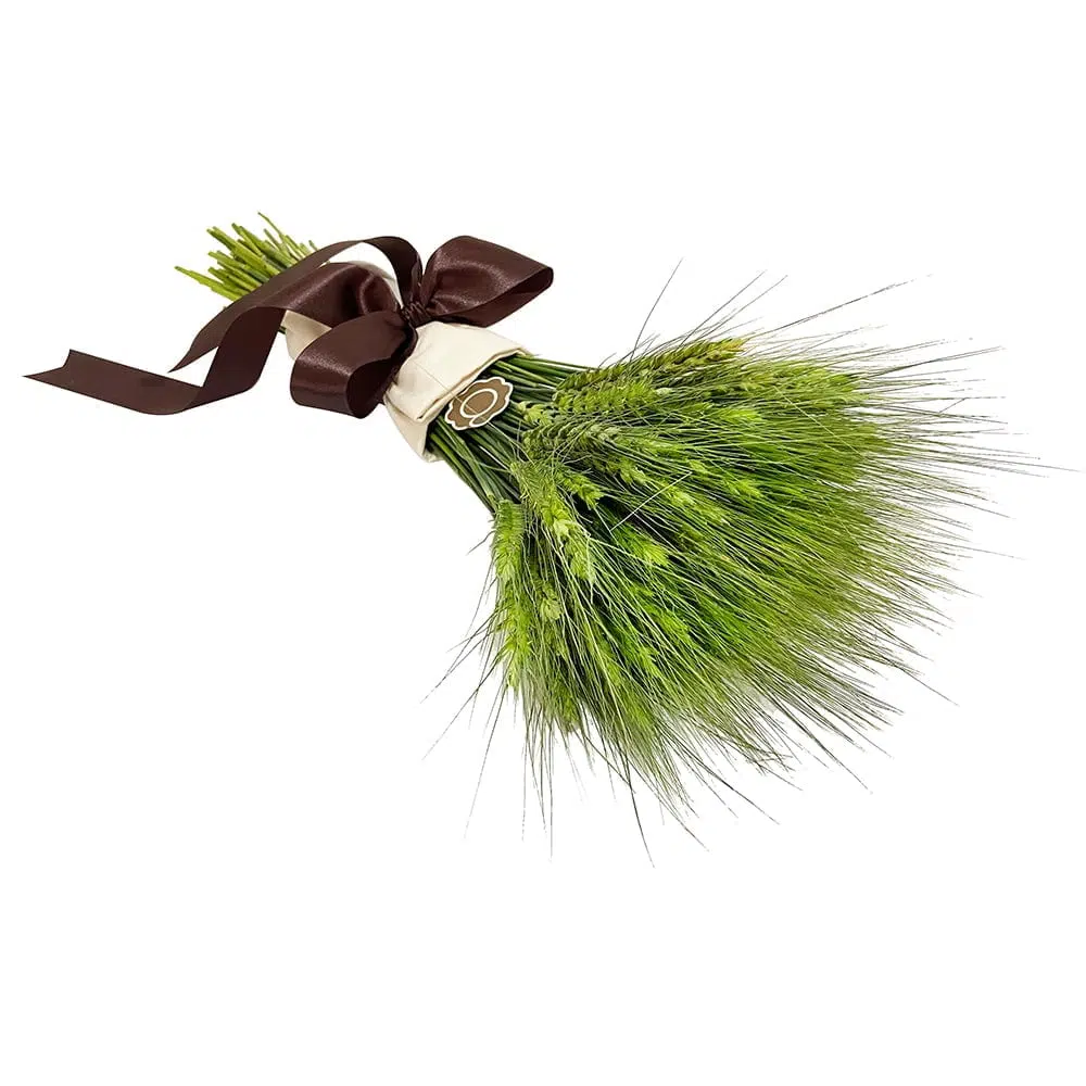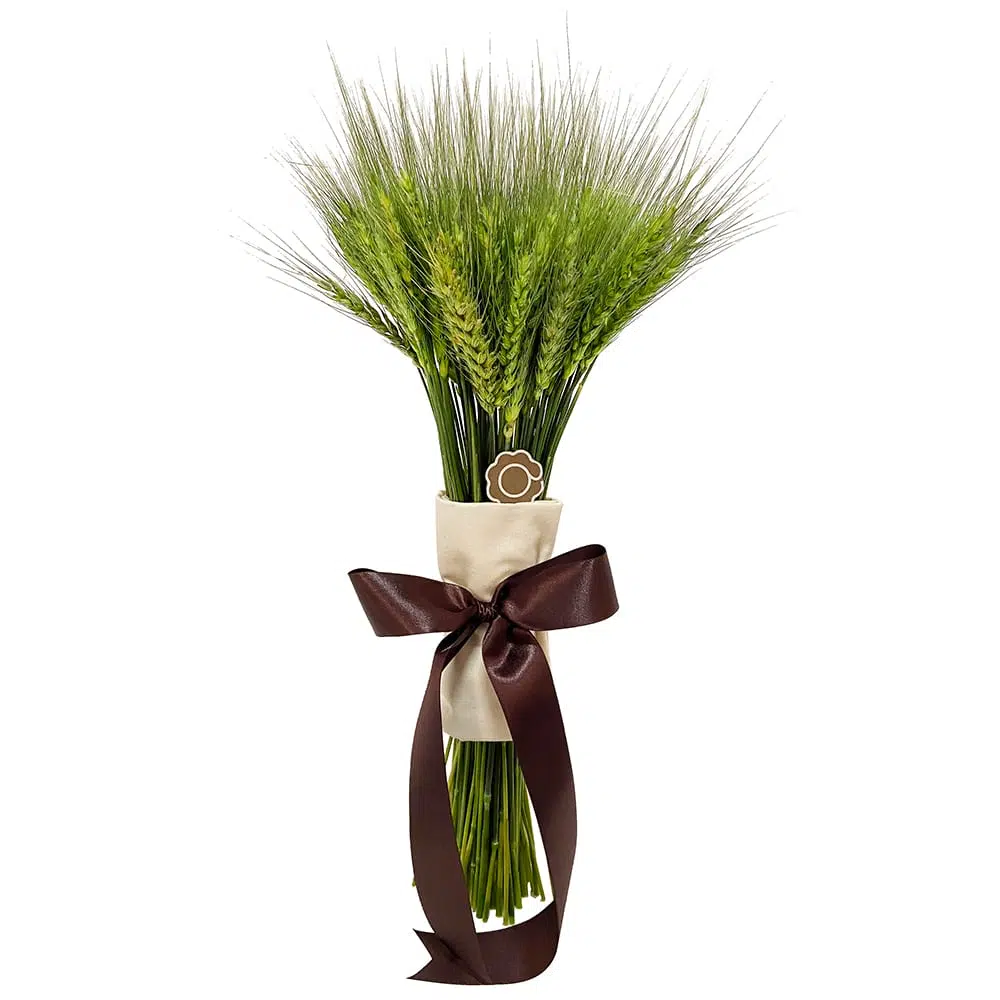 Elegante e diferente, o buquê Blé Vert composto por Trigos verdes, envolto em um tecido natural de algodão com fita de cetim marrom. O buquê perfeito para demonstrar o carinho em pequenos momentos!