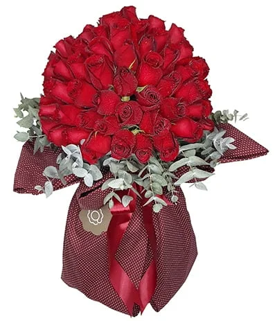 Belíssimo e elegante buquê de 100 Rosas vermelhas, o “Burgandy” é envolto com tecido e laço. Surpreenda o seu grande amor!
