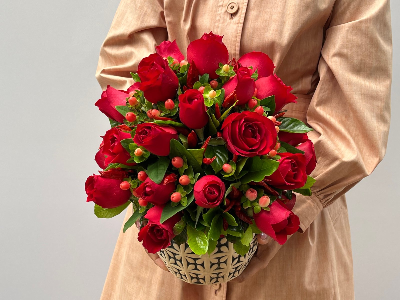 Por esse motivo, podem ocorrer sutis variações na quantidade, nas cores ou nos tamanhos das flores, singularidades que tornam cada arranjo único, como cada gesto de amor.