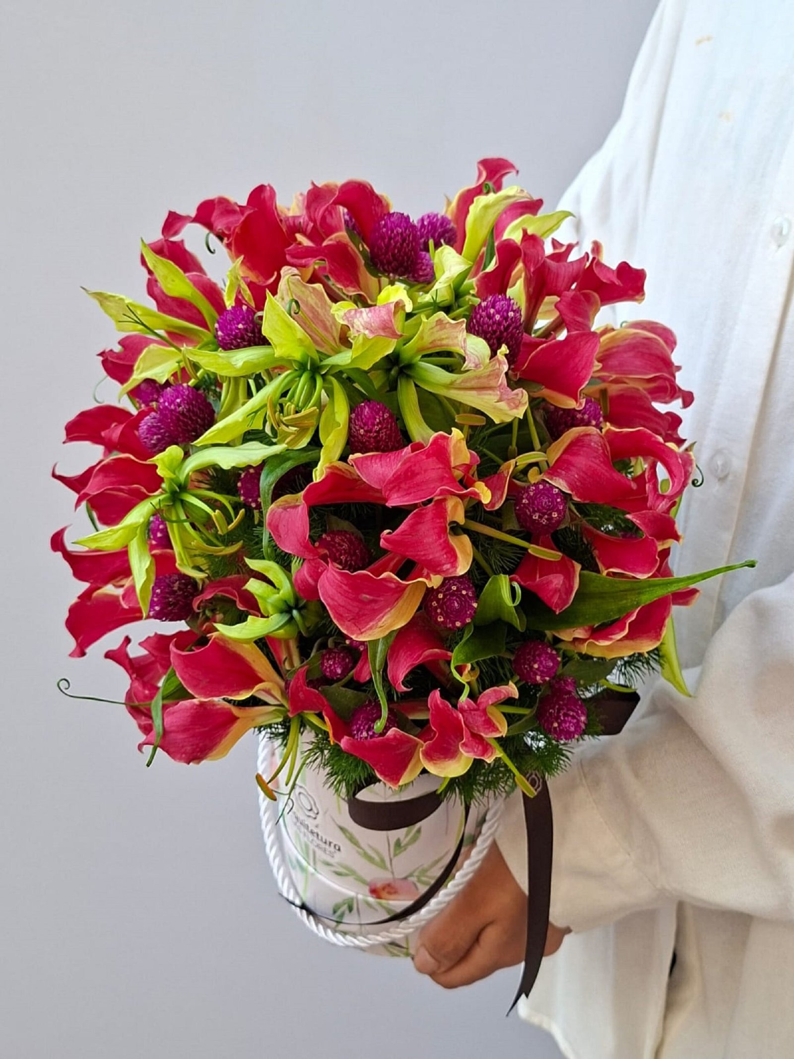 Por esse motivo, podem ocorrer sutis variações na quantidade, nas cores ou nos tamanhos das flores, singularidades que tornam cada arranjo único, como cada gesto de amor.