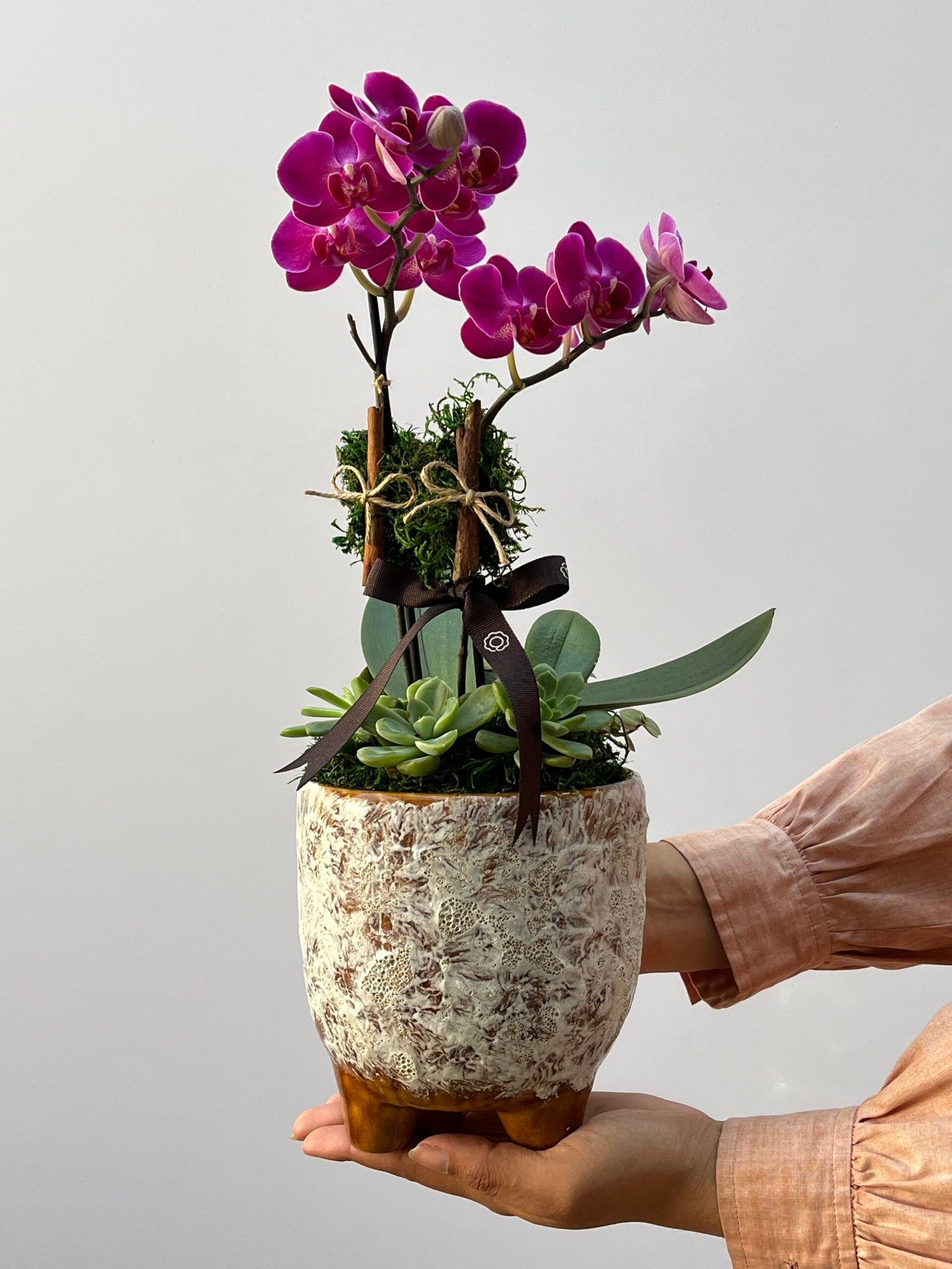 Arranjo de Mini Orquídeas Phalaenopsis pink de 02 hastes;
