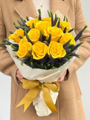 Helios – Buquê de 12 Rosas Amarelas e Verônicas