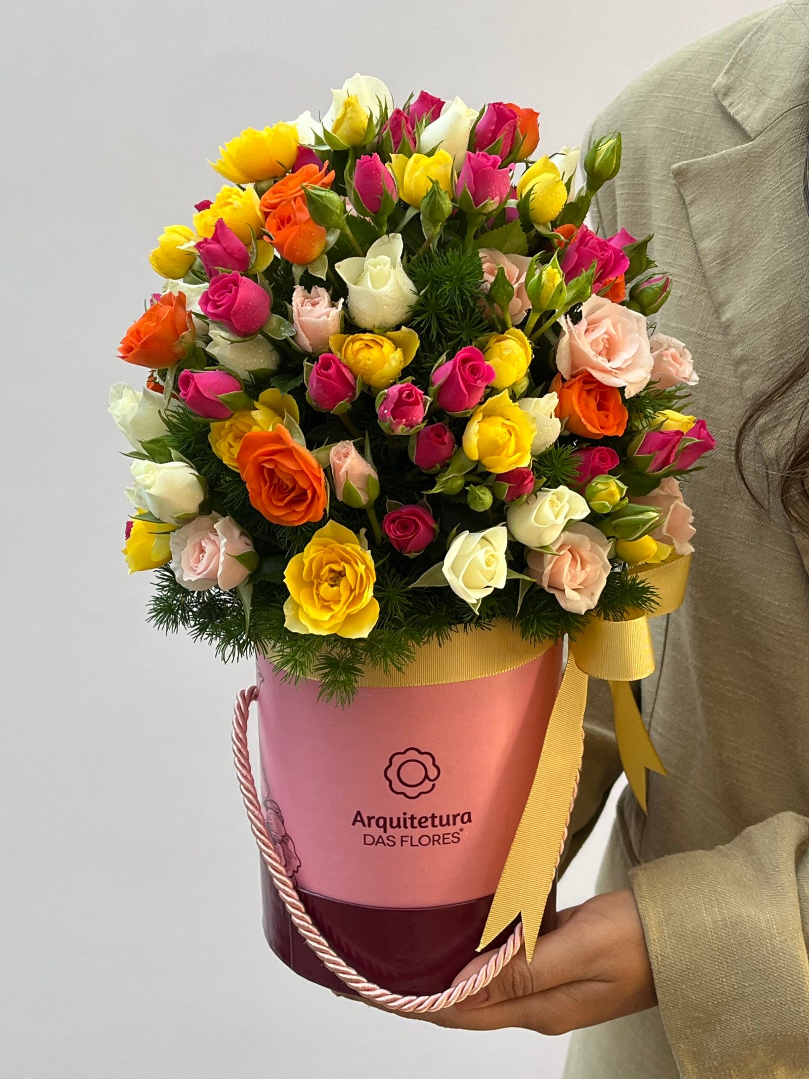 Por esse motivo, podem ocorrer sutis variações na quantidade, nas cores ou nos tamanhos das flores, singularidades que tornam cada arranjo único, como cada gesto de amor.