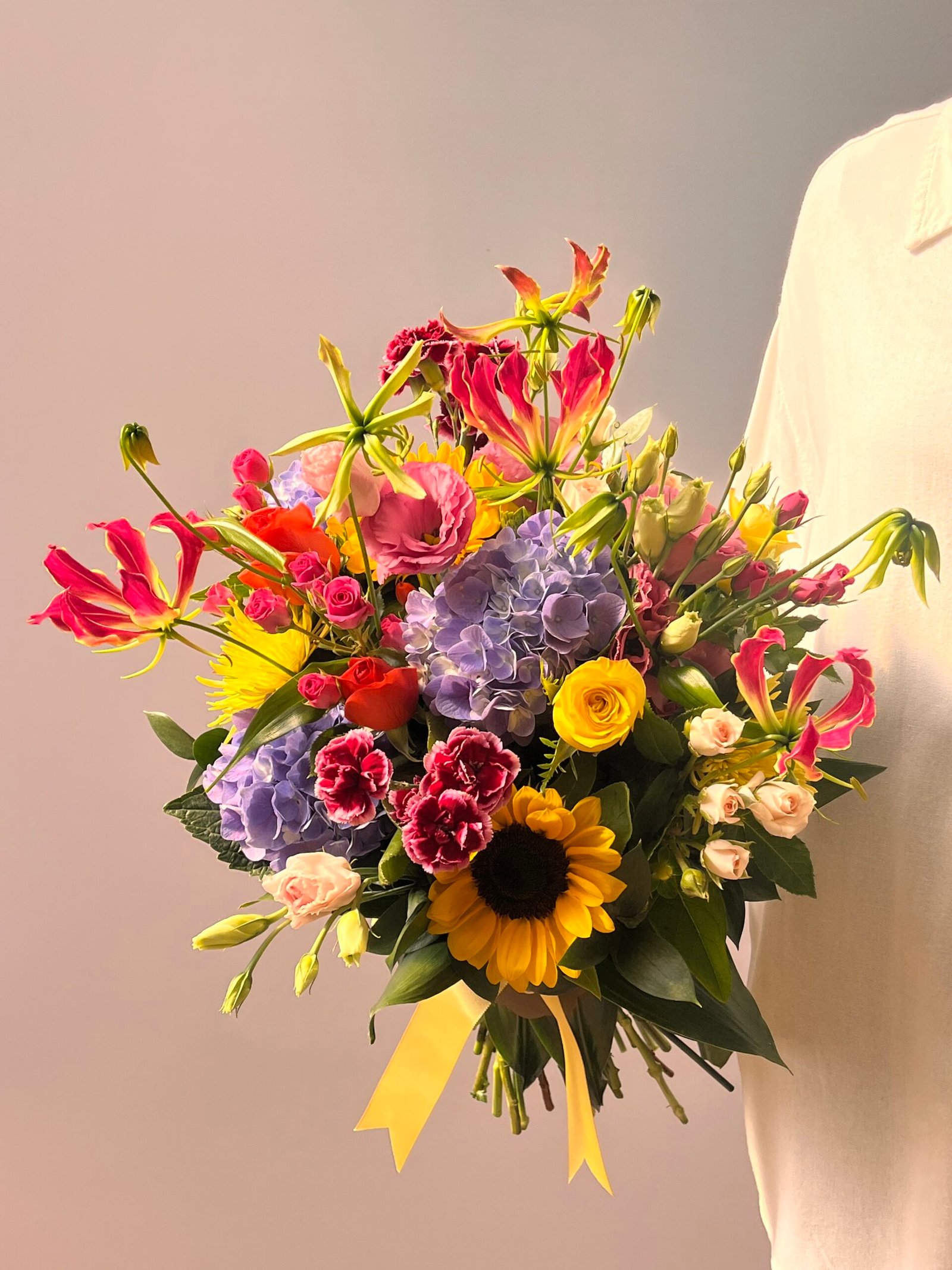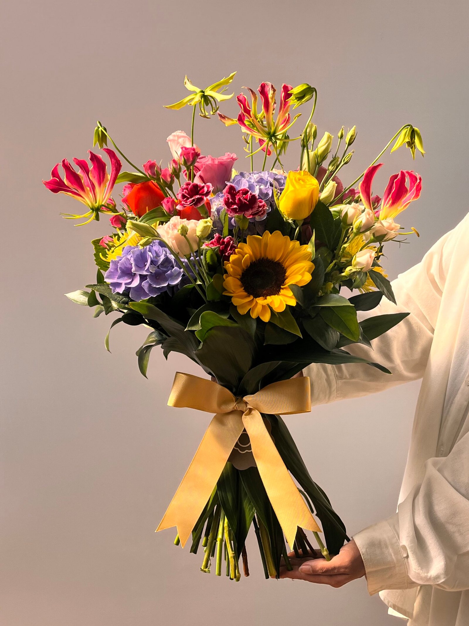 Por esse motivo, podem ocorrer sutis variações na quantidade, nas cores ou nos tamanhos das flores, singularidades que tornam cada arranjo único, como cada gesto de amor.