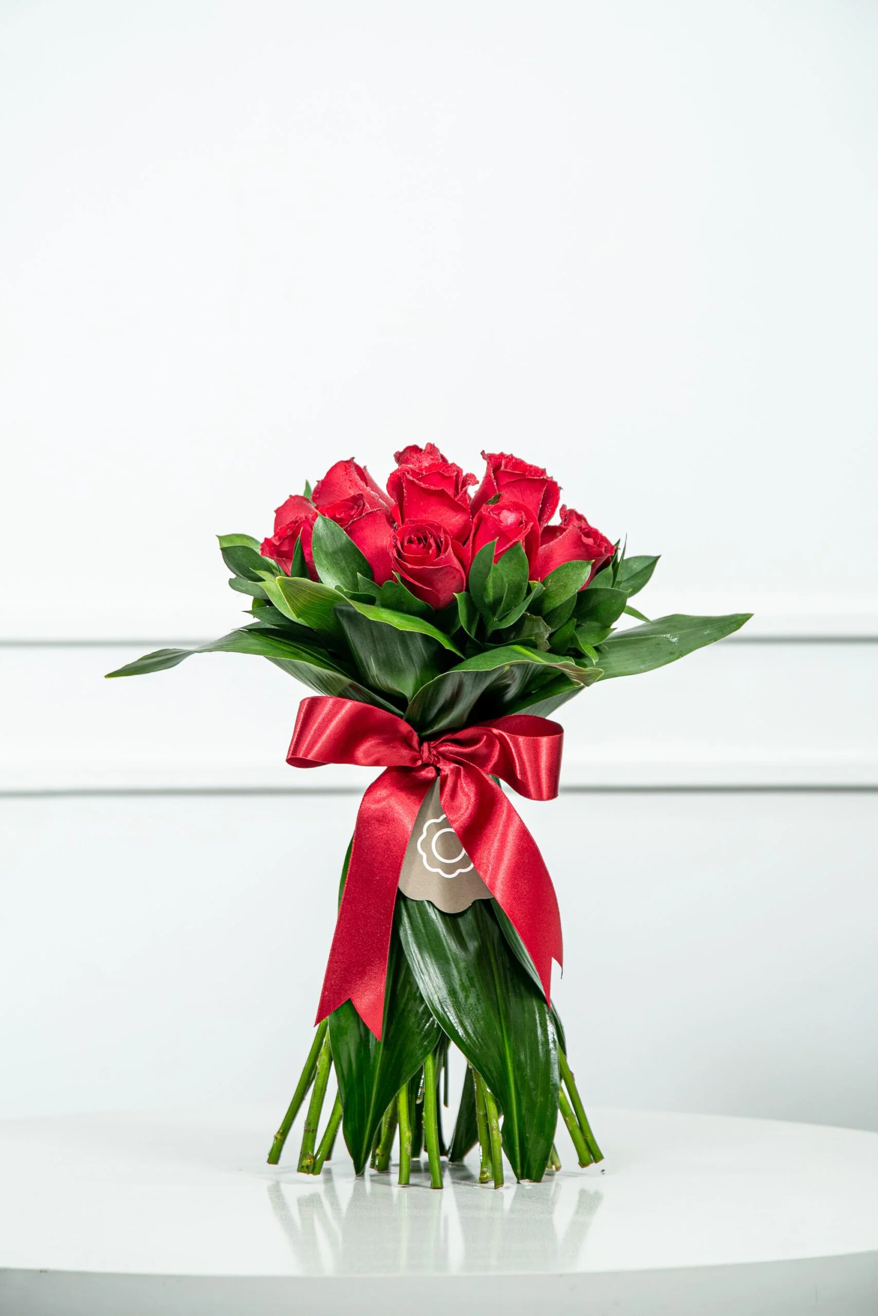 Apresentamos este buquê deslumbrante de Rosas vermelhas, uma expressão atemporal de sentimentos intensos. Envoltas em folhas verdes naturais e adornadas com um laço de cetim elegante, essas Rosas criam um buquê que transborda emoção e beleza.