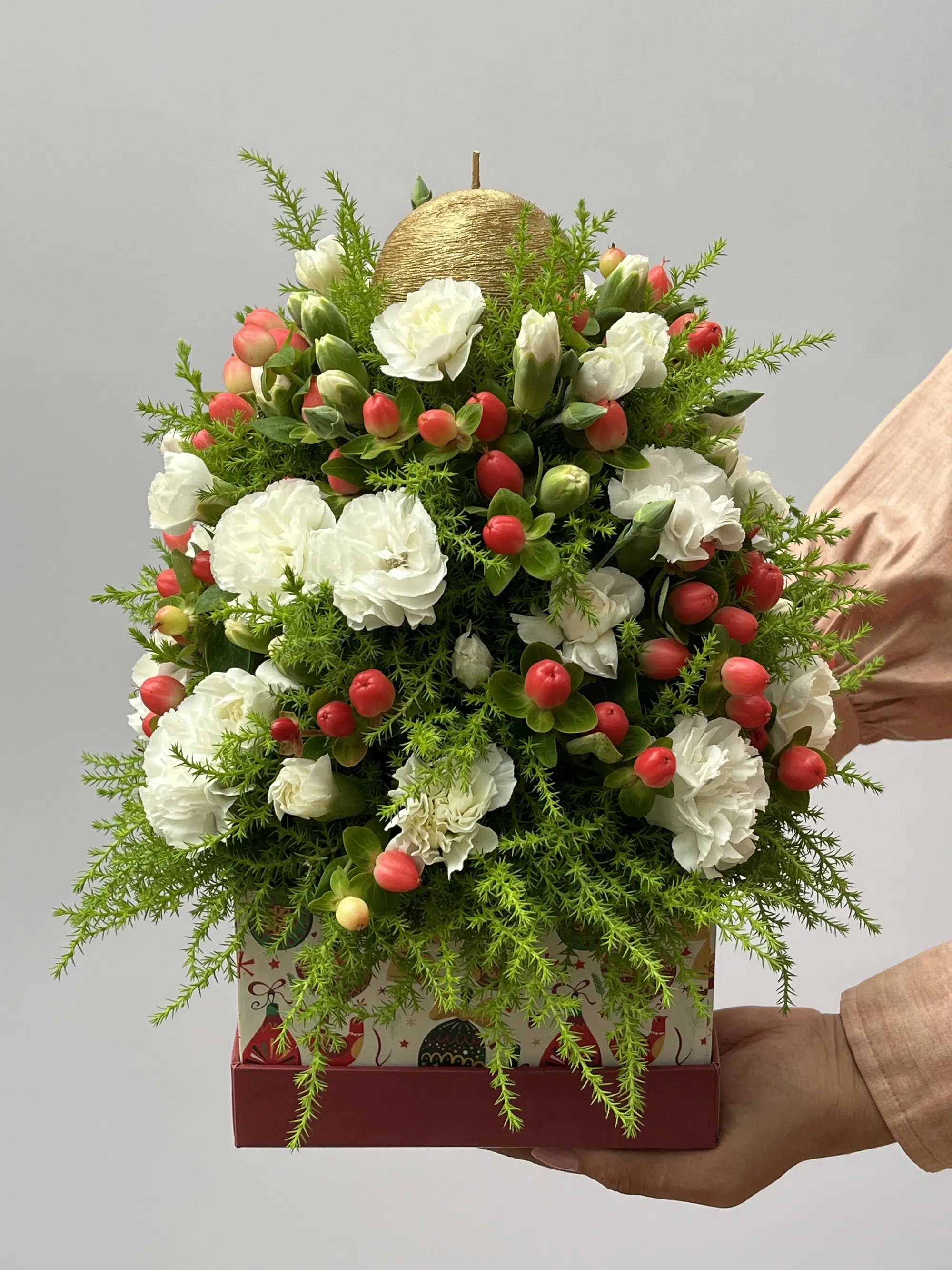 Arranjo em formato de Pinheiro, em uma box temática que celebra a tradição e o encanto da temporada.
