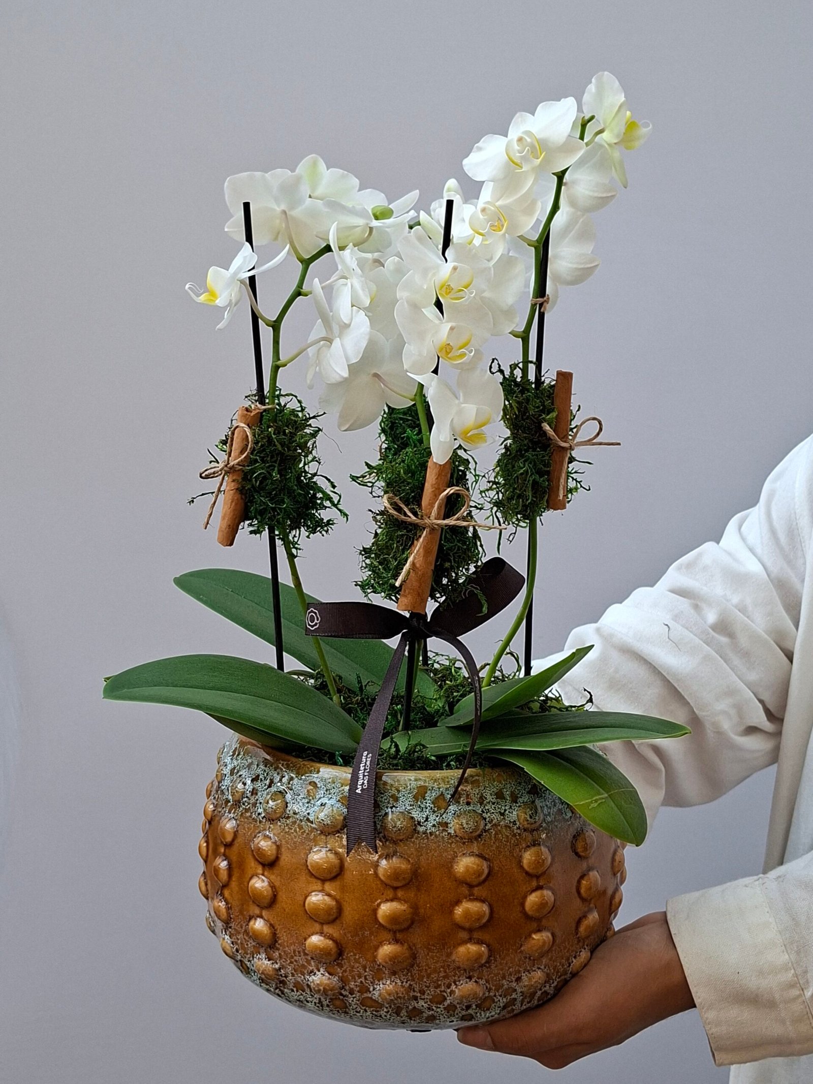 Minha mãe receber o arranjo e imediatamente me ligou pra mostrar! Lindas orquídeas e o vaso também!