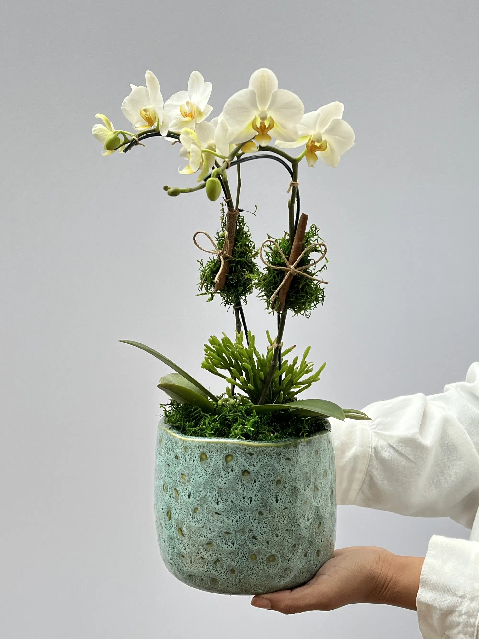 Cheio de personalidade, esse arranjo com duas hastes de Mini Orquídeas Phalaenopsis brancas é perfeito para presentear nas ocasiões mais felizes! As flores vêm em um elegante cachepô de cerâmica.