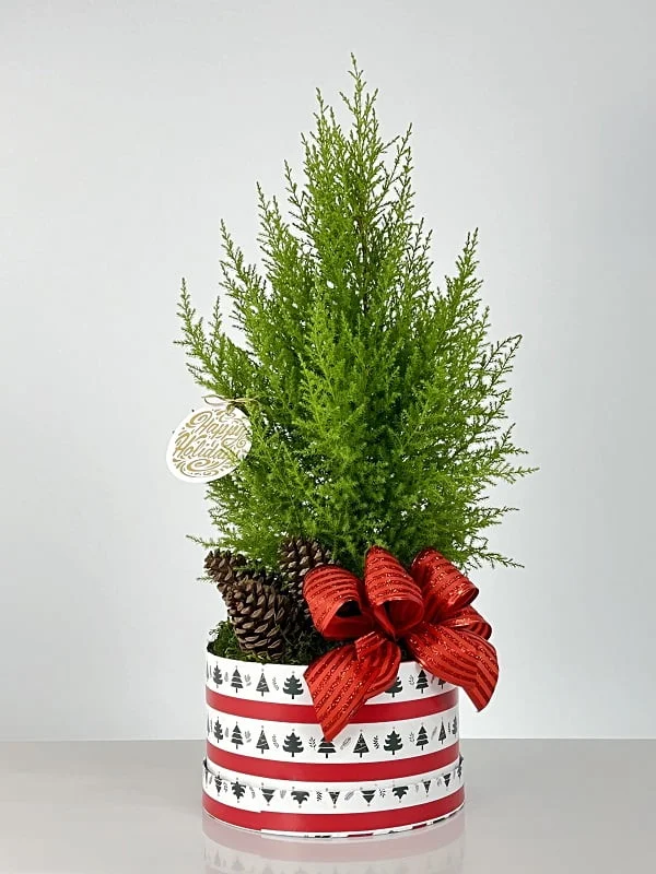 Tuia Limão, box, Pinhas, Musgo desidratado e laço vermelho.