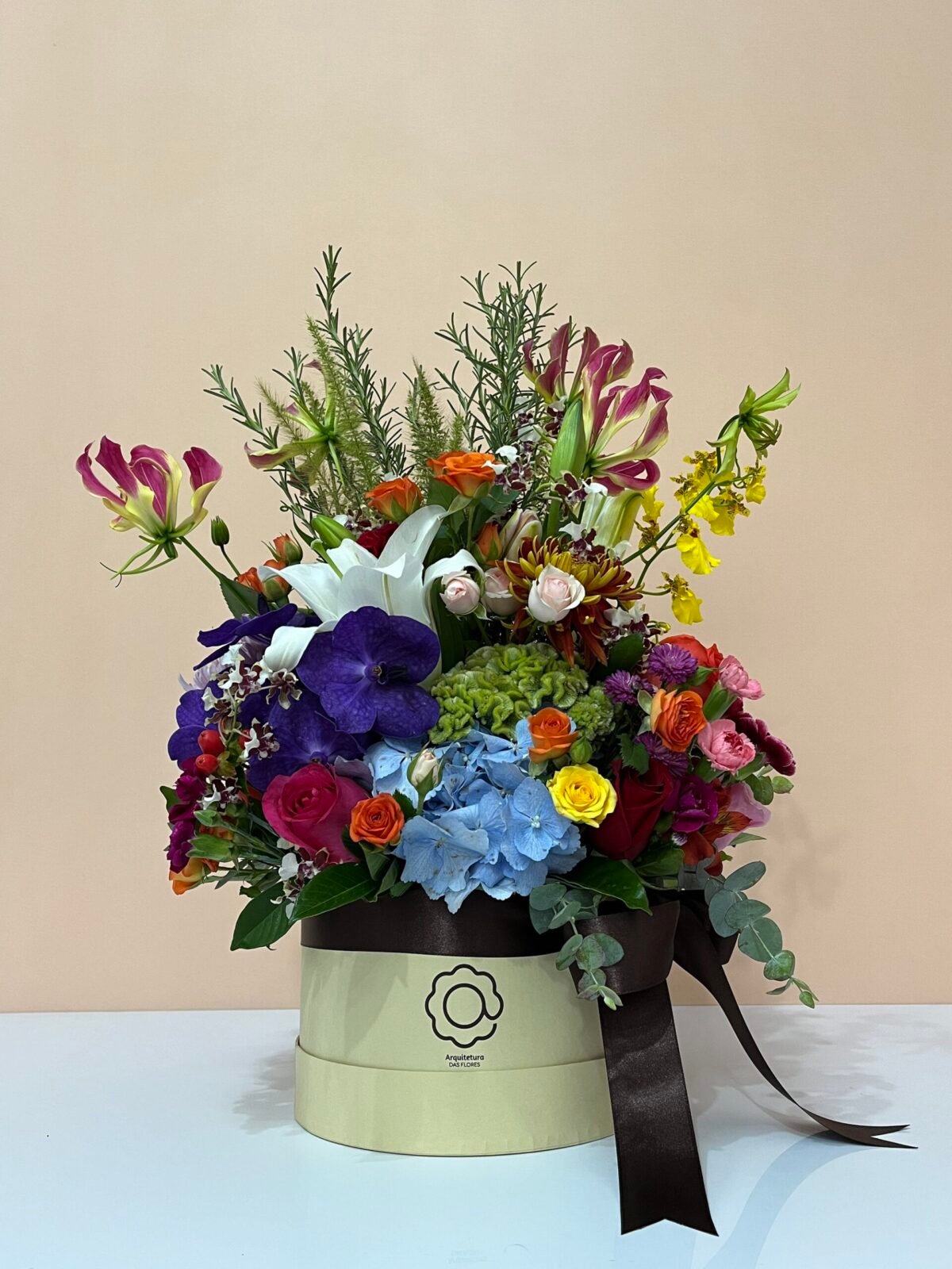 Por esse motivo, podem ocorrer sutis variações na quantidade, nas cores ou nos tamanhos das flores, singularidades que tornam cada arranjo único, como cada gesto de amor.