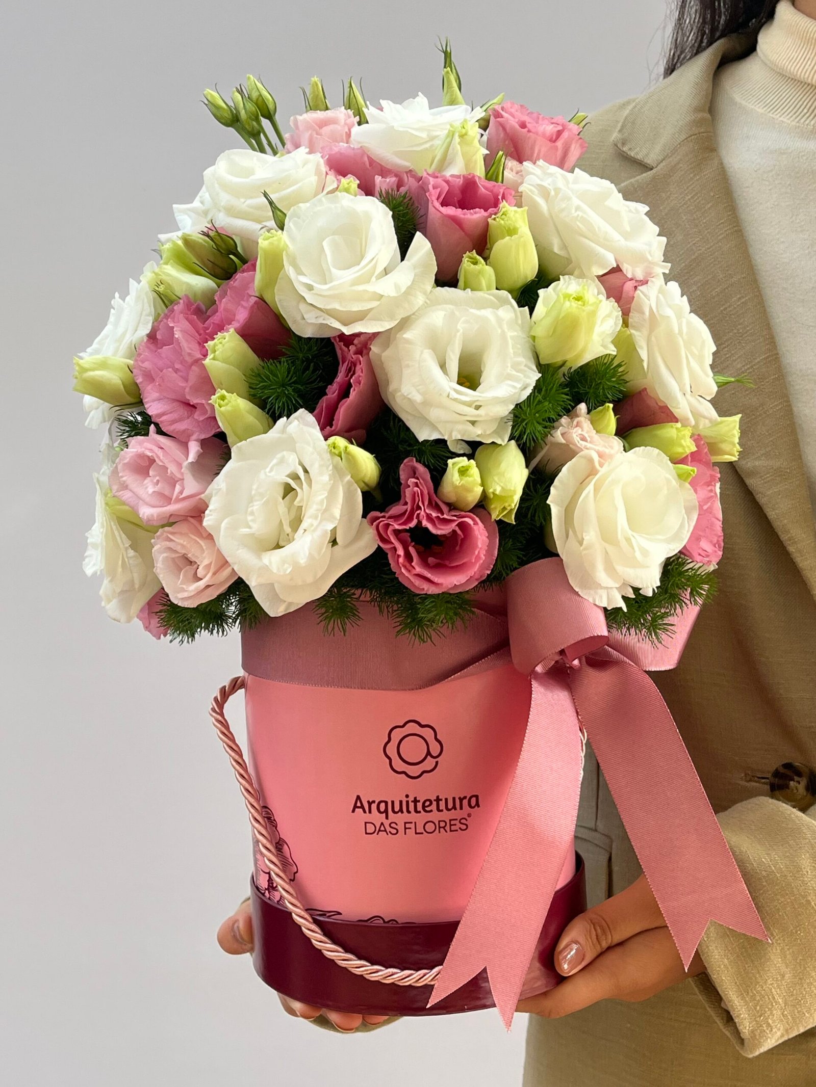 Box de Lisianthus brancos e rosados.