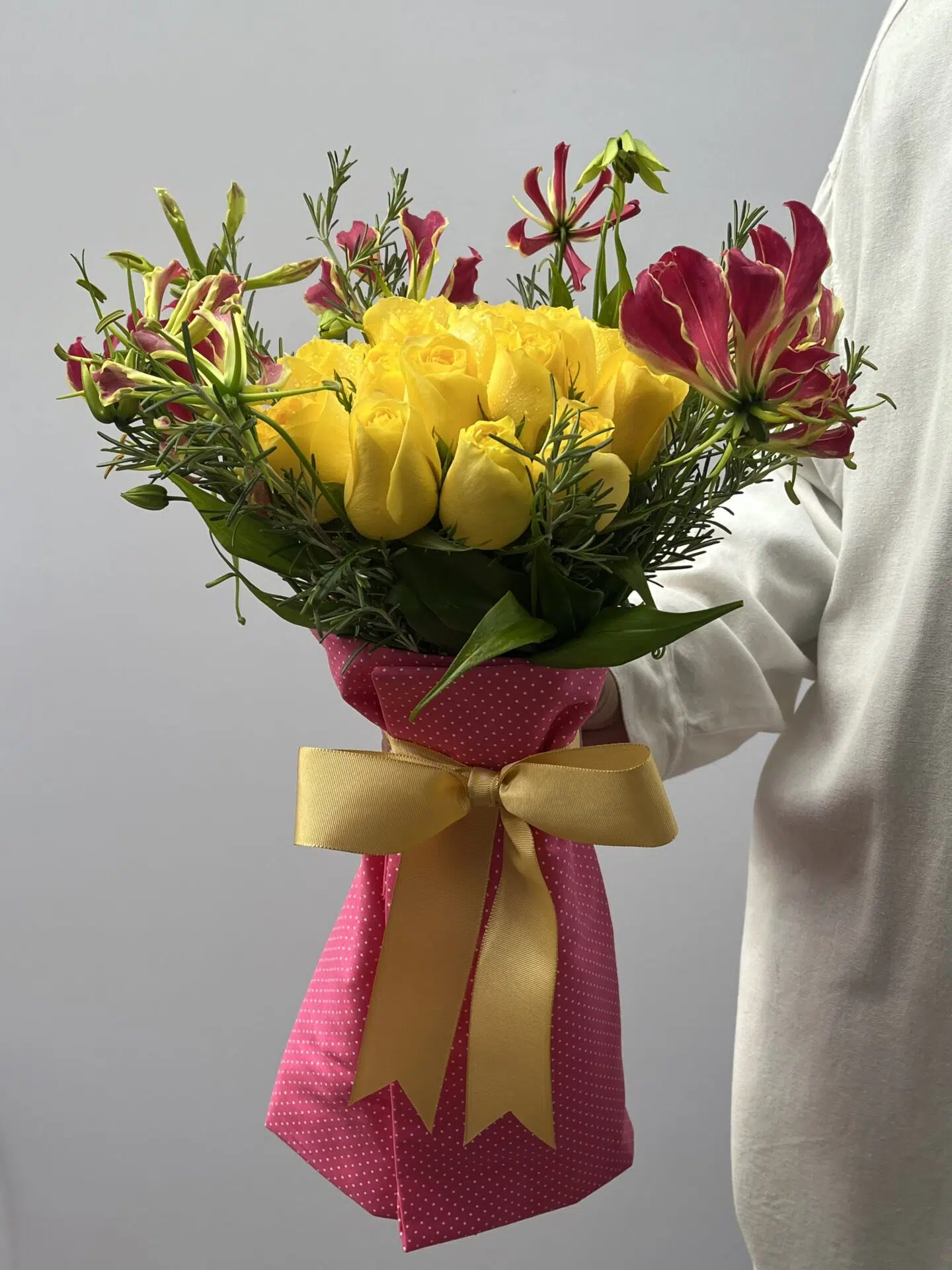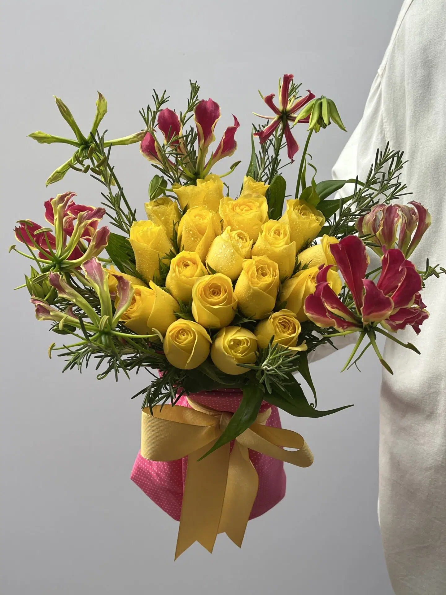 Por esse motivo, podem ocorrer sutis variações na quantidade, nas cores ou nos tamanhos das flores, singularidades que tornam cada arranjo único, como cada gesto de amor.