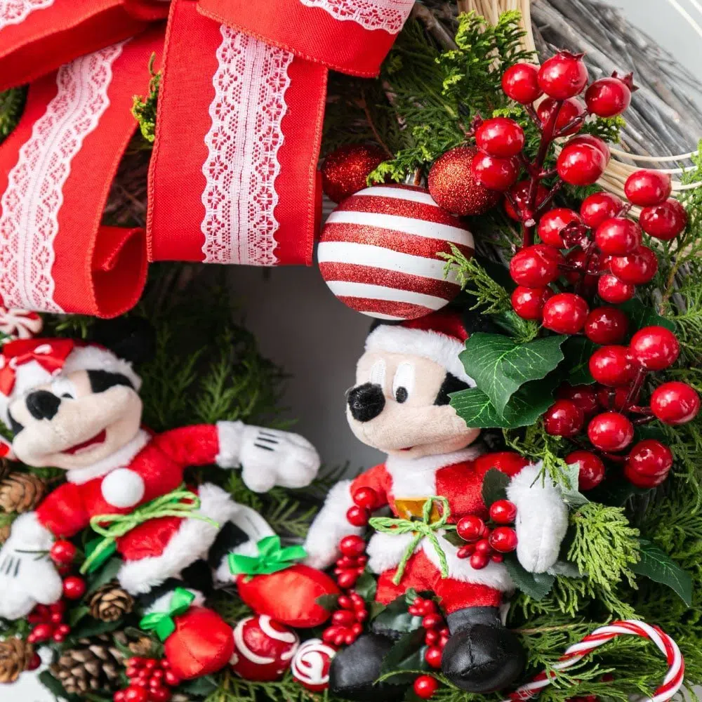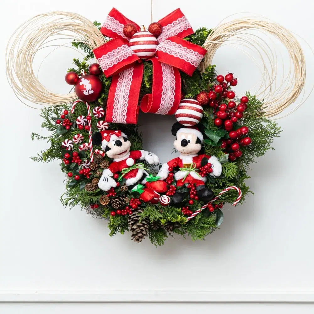 Guirlanda natalina inspirada para a coleção, “Believe: It’s Christmas Time”, com detalhes do Mickey e Minnie. Perfeita para decorar a sua casa!