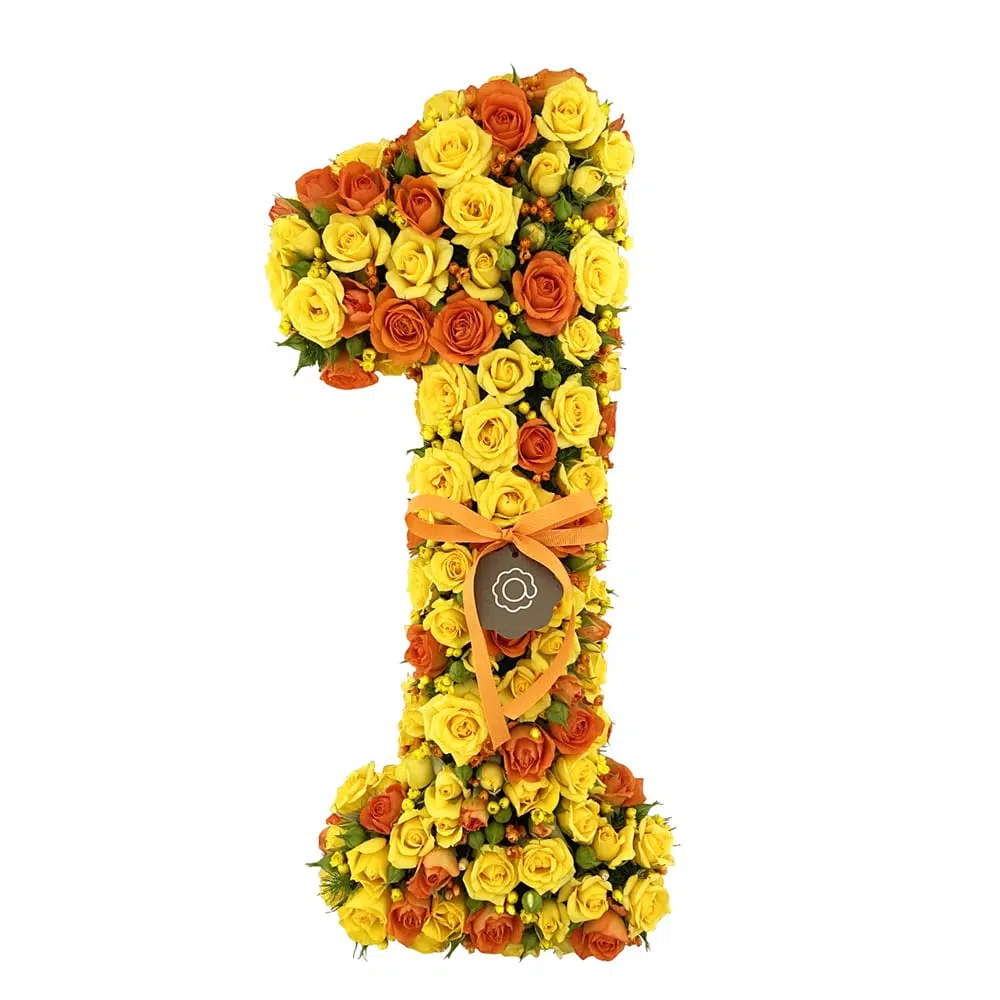 Comemore a ocasião mais especial, com esse belo arranjo numeral com flores de Mini Rosas “One“.