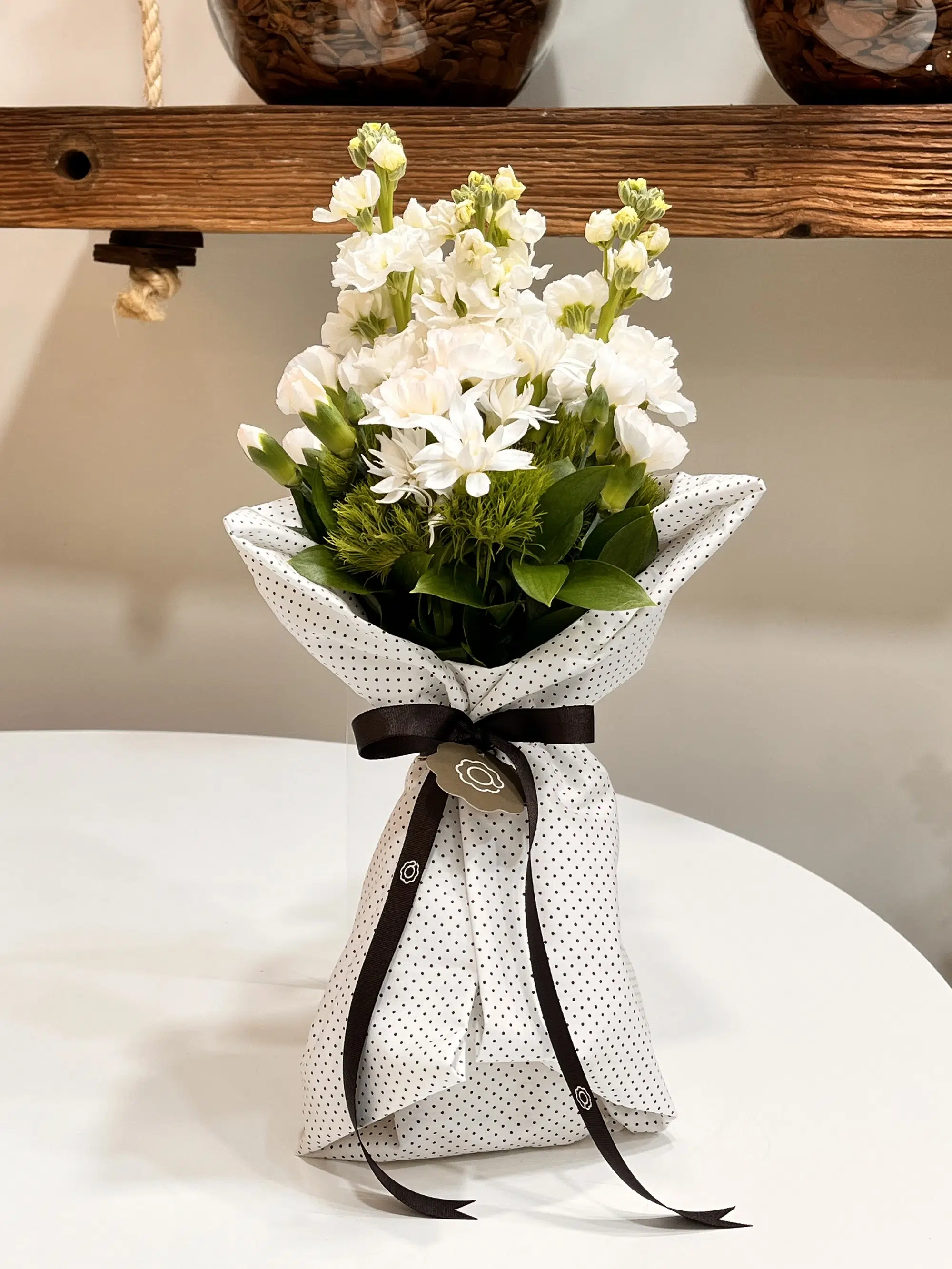 Flores brancas se reúnem com suavidade neste buquê que carrega a leveza das primeiras horas do dia.