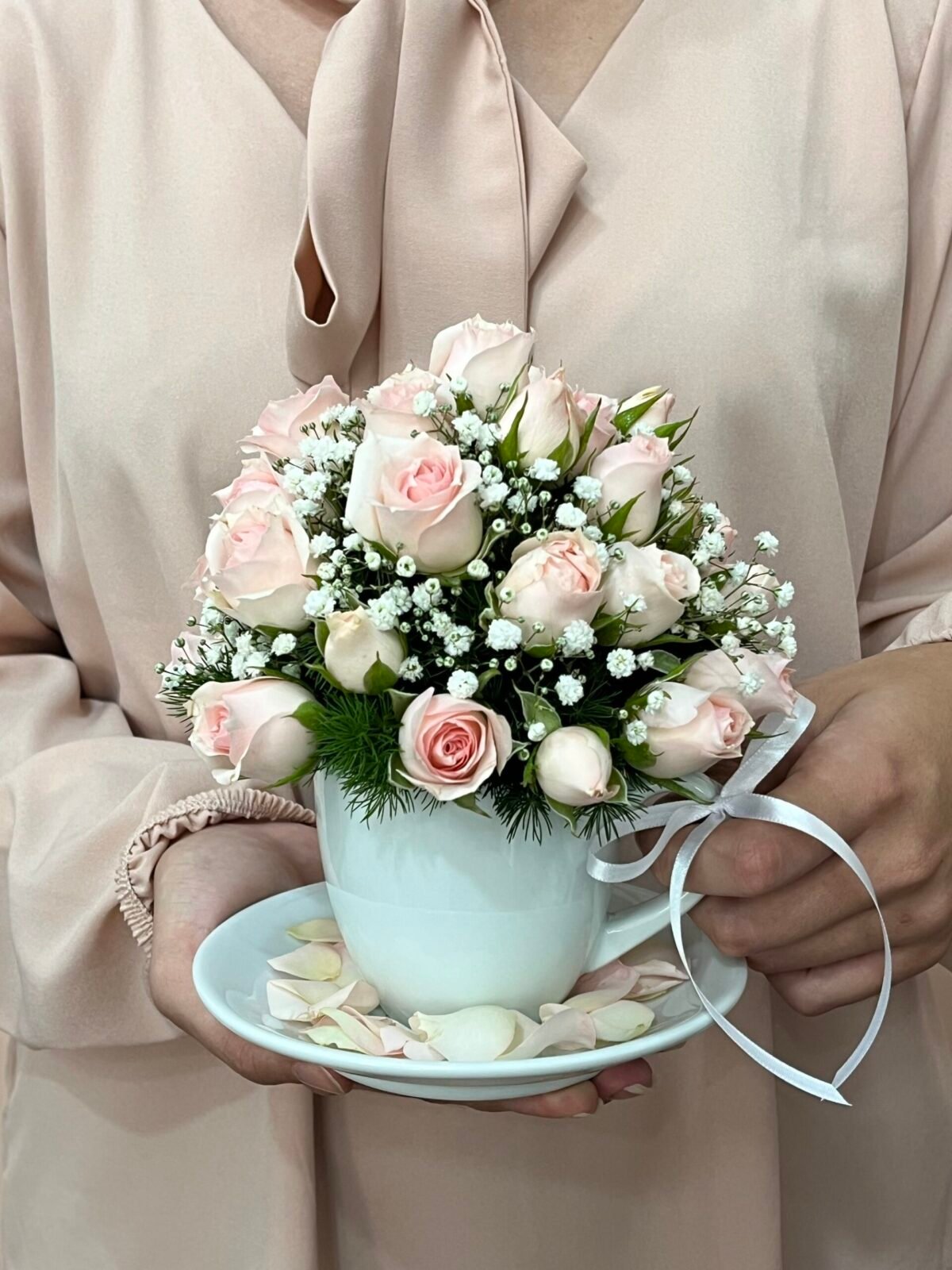 Entre no clima britânico com um chá das cinco mais do que especial. Esse lindo arranjo “Oxford” de Mini Rosas na cor de rosa e Gypsophilas vem dentro de uma xícara de chá, para celebrar com charme uma data feliz!