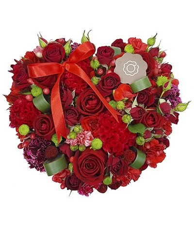 Emocione a quem você ama com belo arranjo “P.S Eu te amo” em tons vermelhos. Composto por Rosas, Mini rosas e Cravinas em forma de coração.