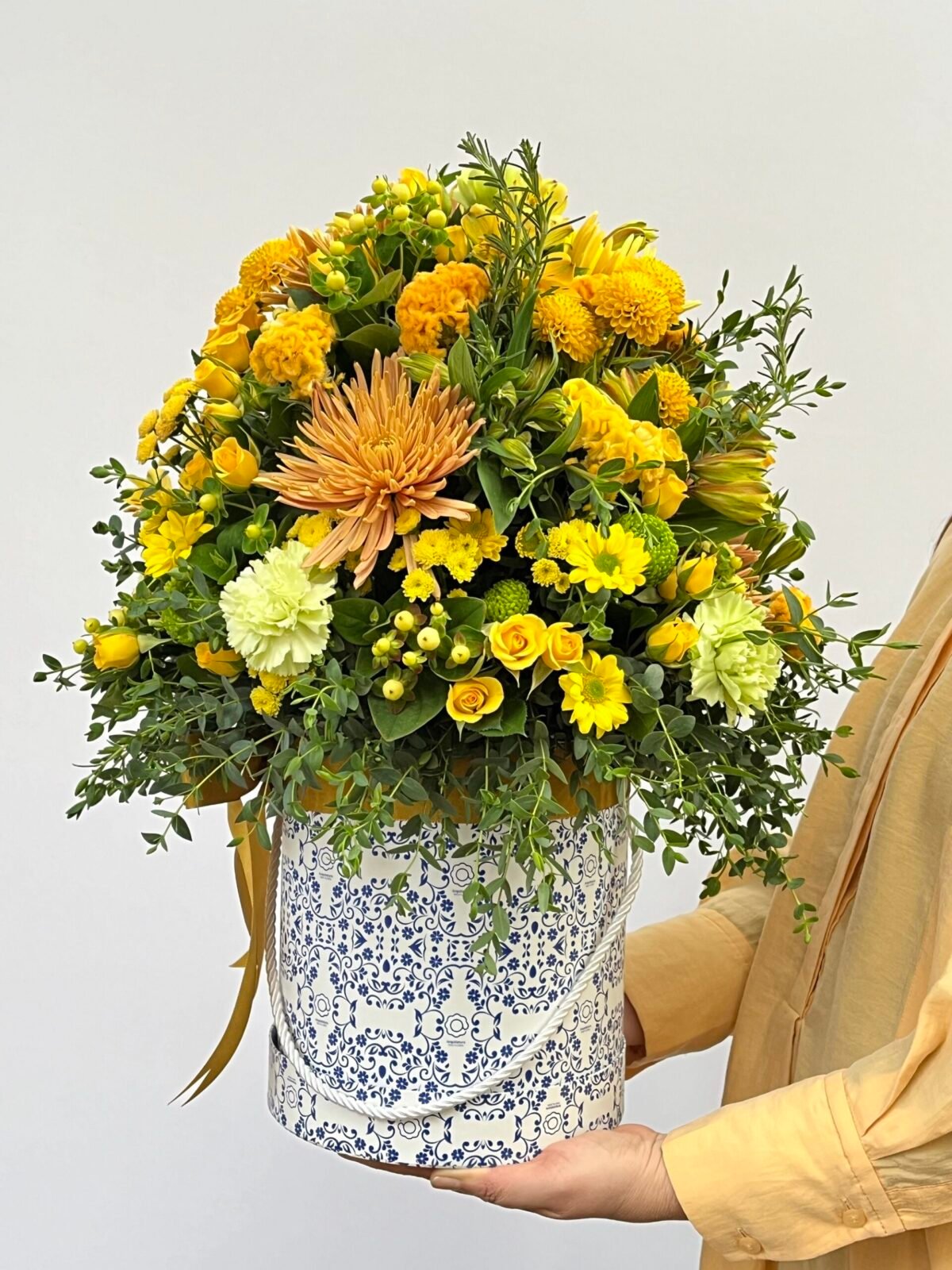 Box com mix de flores amarelas.