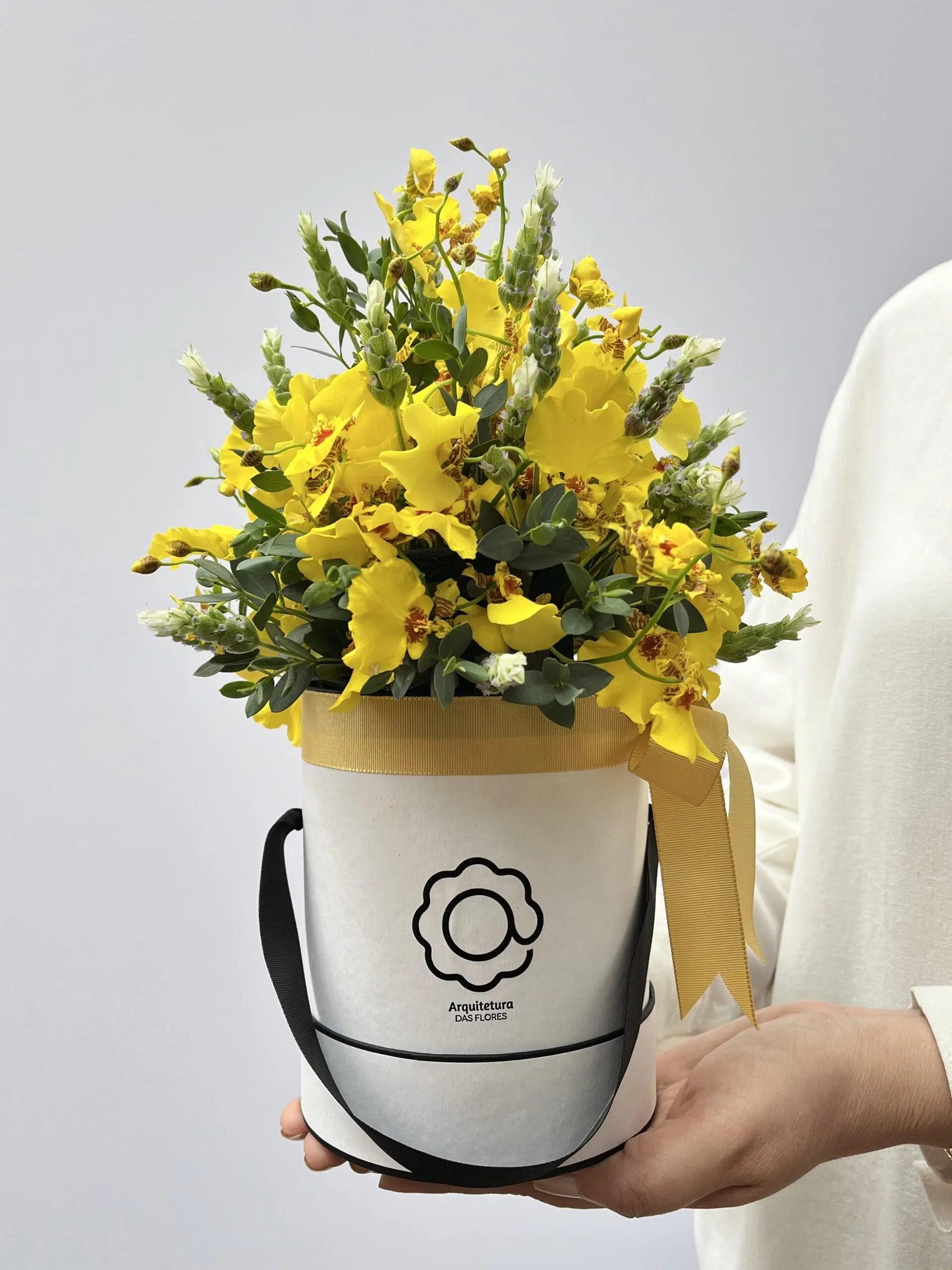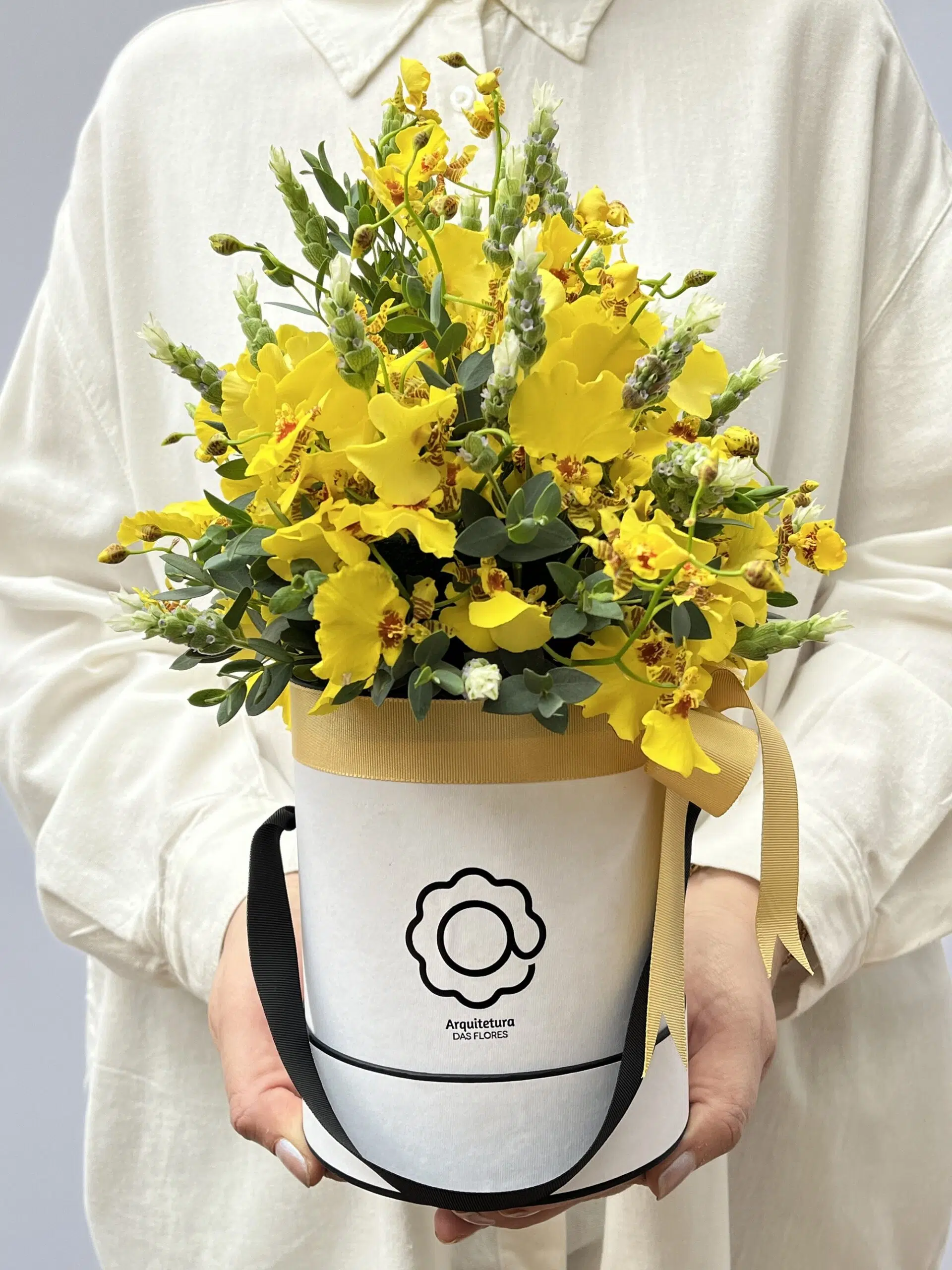 Encantadora e sofisticada, esta box flower une a delicadeza das Orquídeas chuva-de-ouro com o charme aromático das lavandas.
