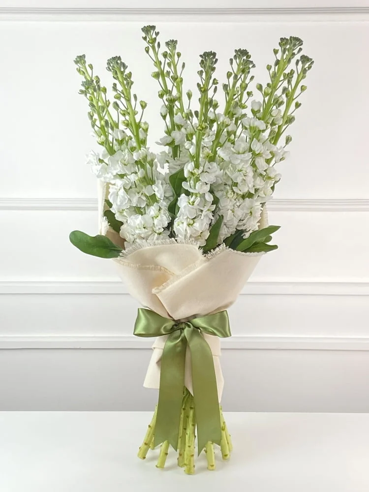 Seja para celebrar um momento especial ou simplesmente para trazer um toque de sofisticação ao seu dia, esse buquê é a escolha perfeita. Os Goivos brancos são símbolos de pureza, inocência e amor verdadeiro, tornando-o um presente simbólico e cheio de significado.