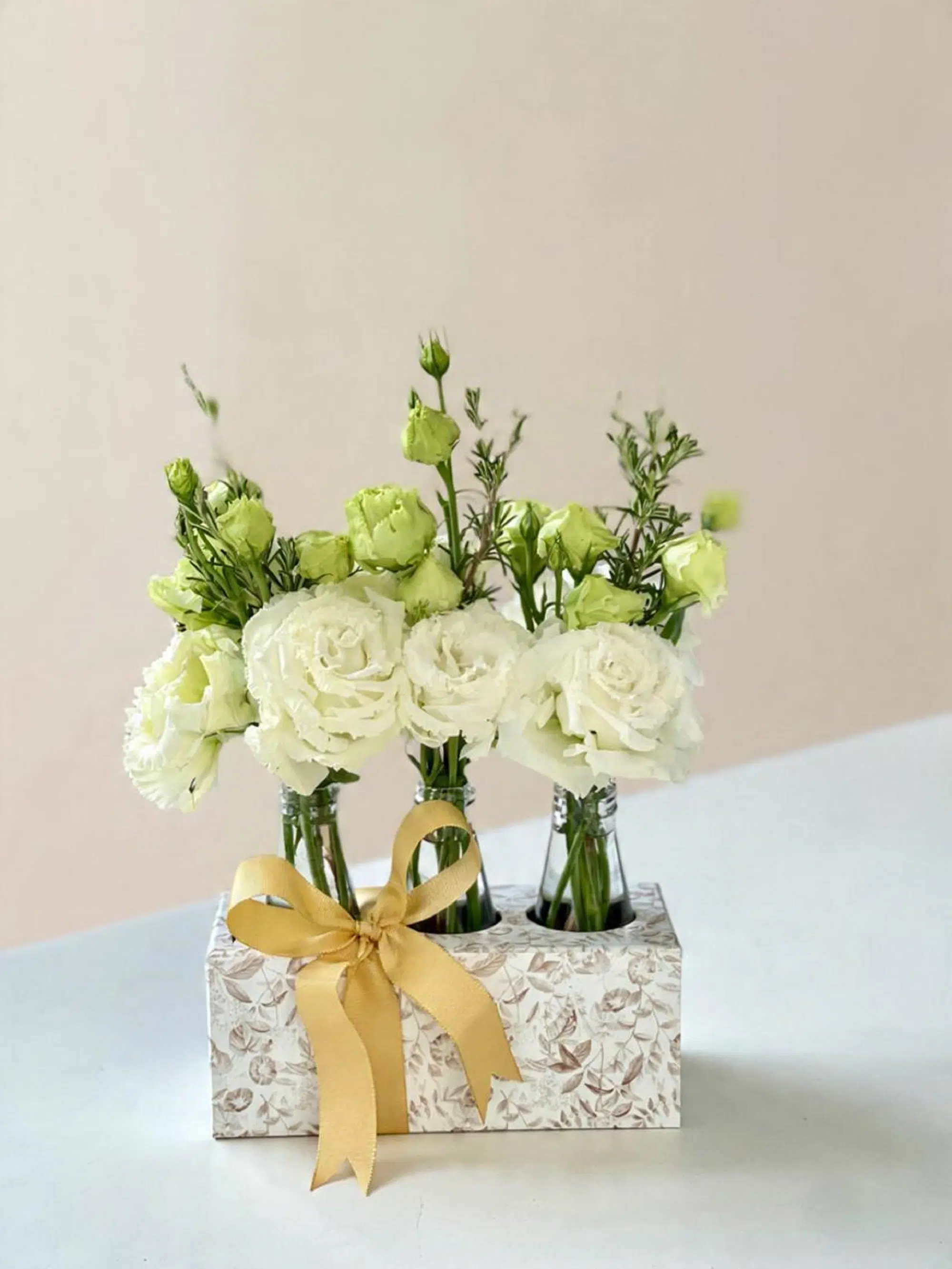 O Trastevere é um arranjo de Lisianthus brancos, que trazem pureza e leveza em uma composição delicada.