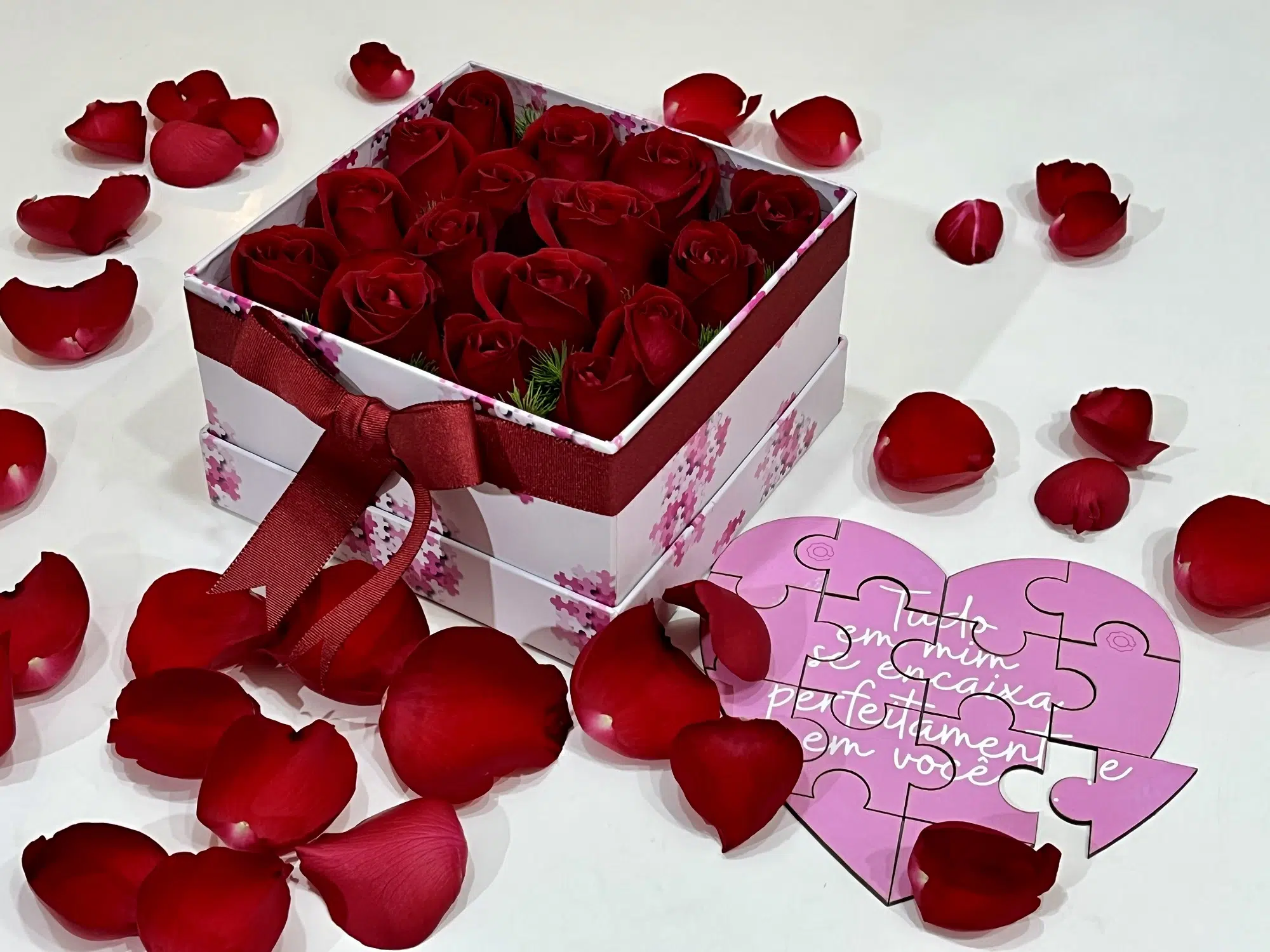 Two Hearts – Box de Rosas Vermelhas e quebra-cabeça romântico